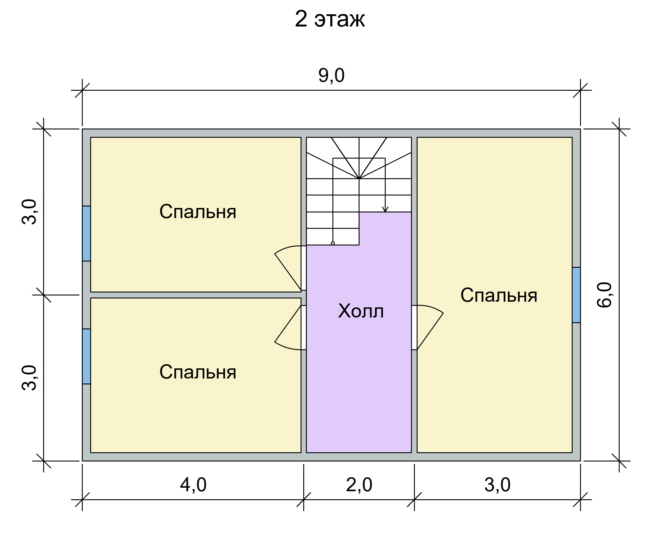 Коттедж «Радужный 6х9» – эффектный загородный дом каркасного типа общей площадью 54 м2. Он прочен, надежен и предлагает безупречный вариант планировки для комфортной жизни.