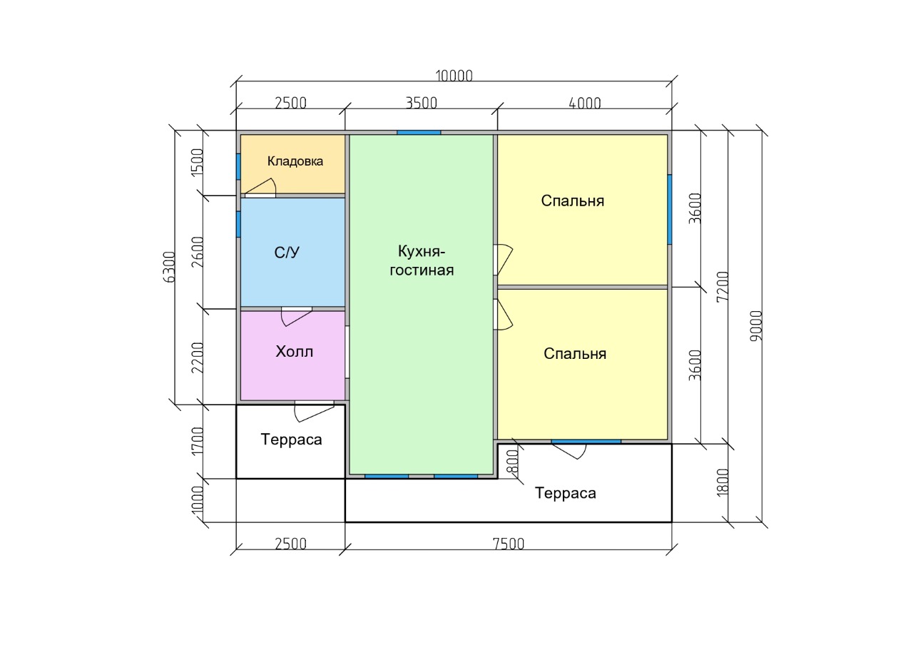 ·       В доме площадью 63 м2 предусмотрены две просторные террасы.